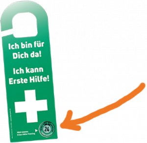 Teilnehmer an Notfall-Update-Kursen erhalten einen Türanhänger, alternativ können Sie den Türanhänger hier bestellen. Um zu zeigen, dass und wann die Auffrischung in Erster Hilfe erfolgt ist, kann eine aktuelle Jahresplakette bestellt werden.